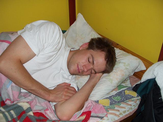 im Bus leise sprechen sollte, wo alle schlafen wollen - ALLE haben ihn